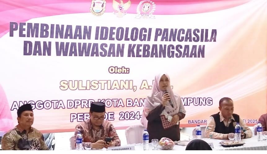 BERJAYANEWS.COM BANDARLAMPUNG — Anggota DPRD Kota Bandarlampung, Sulistiani, menggelar kegiatan Pembinaan Ideologi Pancasila dan Wawasan Kebangsaan di Kelurahan Sumber Rejo Sejahtera, Kamis (8/5/2025).