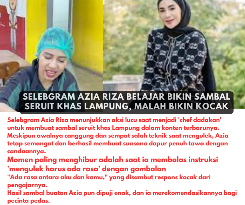 Berjayanews.com, -Selebgram Azia Riza menunjukkan aksi lucu saat menjadi ‘chef dadakan’ untuk membuat sambal seruit khas Lampung dalam konten terbarunya.